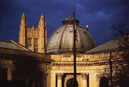 As we all know, New York University is a slighlty scattered urban institution based around Washington Square. It likes to bill itself as “having the city as your campus” which , of course, is a cheap cop-out for not having a real campus. Being ever-progressive, NYU has torn down all their historic buildings such as University Hall (seen above) on Washington Square.
