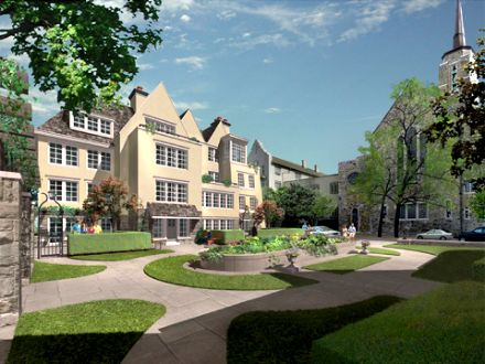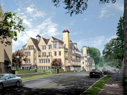 Robert A.M. Stern has apparently designed a proposal for the site of the old Gramatan garage in Bronxville, behind Christ Church. I have to admit that once the garage was torn down I began imagining the possibilities for the site. Christ Church, by Grosvenor Goodhue the Great (responsible for St. Vincent Ferrer and the Cadet Chapel at West Point among others), is such a beautiful building, and Stern’s design deftly fits into the context.