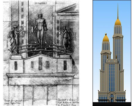 Beautiful stuff. How sad it is that none of these buildings will likely every be constructed. Beauty is considered passé by the aesthetic demons which plague Manhattan these days. But we can still dream…