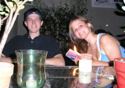 Doug eyes Lizzie’s match-fiddling with suspicion.