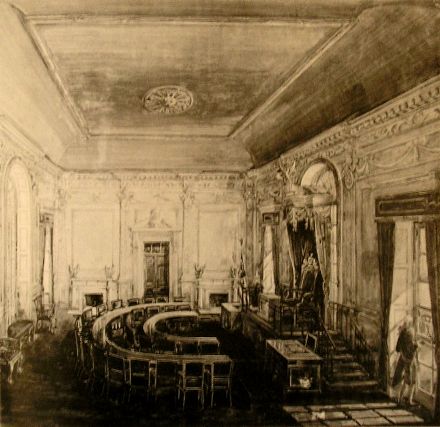 The Senate, meanwhile, met in a smaller chamber but even more stately in design. Again, the members’ desks were arranged in a semicircular pattern while the President of the Senate (a position the Vice-President is designated by the Constitution) was given a positively lordly throne-like chair on a dais from which to preside over the proceedings.