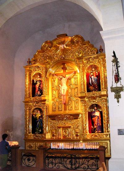 Los retablos fueron hechos en México NO en Sevilla, España. Si lo digo y afirmo es porque yo participe en la realización del retablo principal donde se encuentra Cristo. ok.