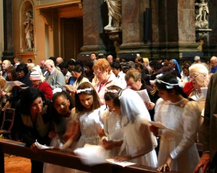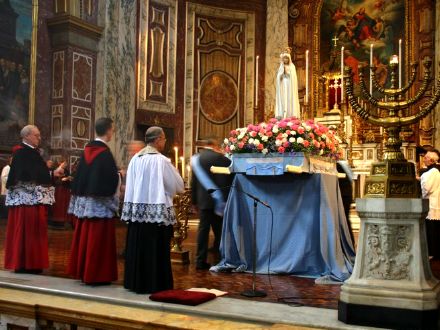 The statue of Our Lady is processed down the nave of the Oratory.