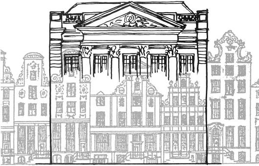 ONE OF MY FAVORITE handsome and dignified, and yet relatively small, buildings is the Felix Meritis on the Keizersgracht in Amsterdam. It has a long and interesting history to accompany the beauty of its design. The ‘Felix Meritis’ was a learned society founded by a number of prominent burghers of Amsterdam in 1777 for the promotion of the arts and sciences in their city. Its name is Latin for ‘fortunate (or more literally, ‘happy’) by merit’. Ten years later, the Felix Meritis purchased four narrow homes on the Keizersgracht and constructed a building, designed by the architect Jacob Otten Husly, on the site.