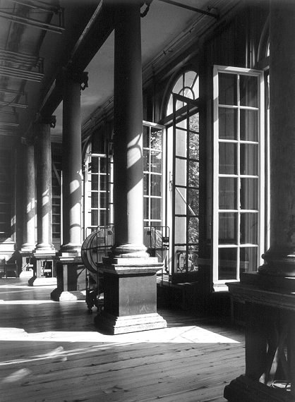 In 1998, the foundation began a restoration of the interior which is, at this point, still incomplete. The restoration which has taken place, however, has been suitably reserved. A respectable dilapidation exists in much of the detailing, showing the building’s age rather than creating a false atmosphere of “looks just as new” which prevails in so many over-restorations.