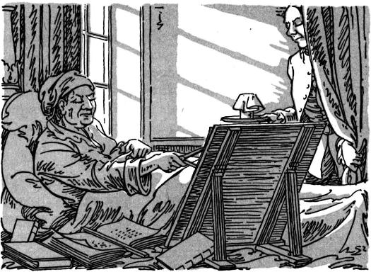 NO DOUBT YOU have been wondering what we have been up to. In truth, I had been beset with a grievous illness of the gravest nature. Bedridden, I scratched and scrawled and made calculations for the expansion of this little corner of the web, which I then had Hogarth (seen above, bringing me some hot toddy in my poor condition) send on to the architect. I have now recovered and my scratchings and calculations have born fruit.