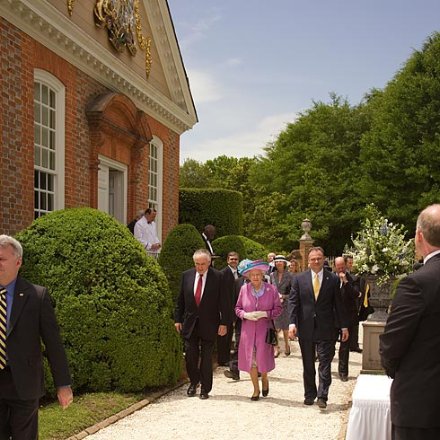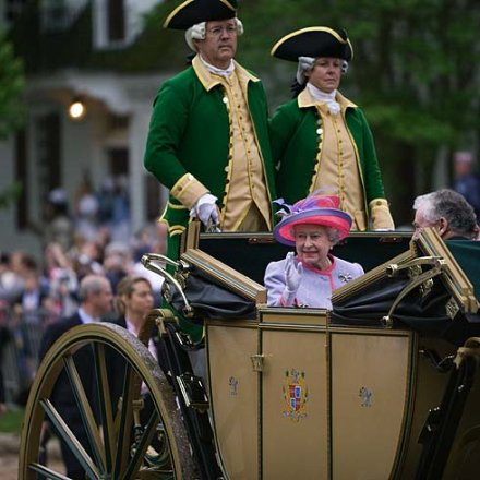 THE QUEEN HAS once again visited Williamsburg, Virginia’s ancient capital, after an absence of half a century. His Excellency Mr. Timothy Kaine, the Governor of the Commonwealth Virginia, was good enough to call a public holiday in the state, giving public workers the day off in celebration of the Queen’s visit. During the trip, Her Majesty spoke to the General Assembly of Virginia, the oldest legislature in the New World, in Richmond (the current capitol), as well as meeting privately with the friends and relatives of the victims of the recent tragedy at Virginia Tech. In Williamsburg, she received an honorary degree from the College of William and Mary and was the guest at a luncheon at the Governor’s Palace, once the official residence of her predecessors’ viceroys in Virginia.