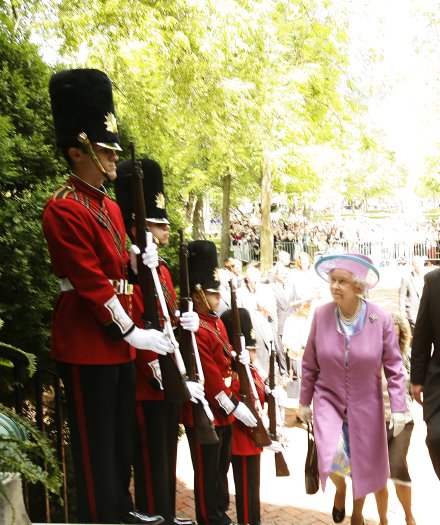Good photographs of Her Majesty The Queen visiting the Colonies but surely one of the footmen on the carriage is female. That’s taking equality a step too far!