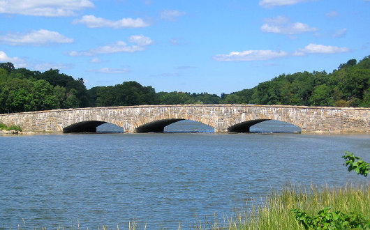 Gorham’s Pond Bridge spans the Goodwives River in Connecticut. Captain George Gorham was born in January 1696 (O.S.) at Barnstable in the Province of Massachusetts Bay. The Captain married Hannah Banks, a Greenwich girl, in 1726 and bought the grist mill in 1740. While most of this neck of the woods leaned towards the Rebels during the Revolution, Robert Gorham was a staunch Tory. From time to time, fellow Tories would land at Gorham’s Mill to raid local Rebel strongholds. After disturbing a meeting at the Congregational Meeting House — a local den of rebellion — the Rebels hid behind a stone wall waiting to ambush the Tories at an expected raid. The Tories, however, got wind of the plotted ambush, and snuck up behind the Rebels, launched a surprise attack, and duly won the skirmish.