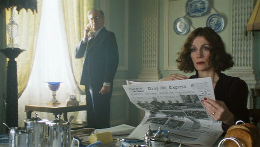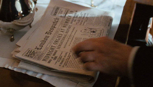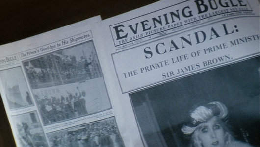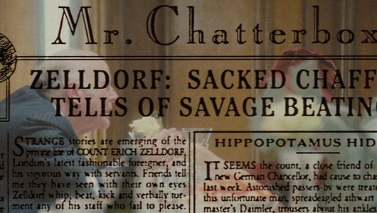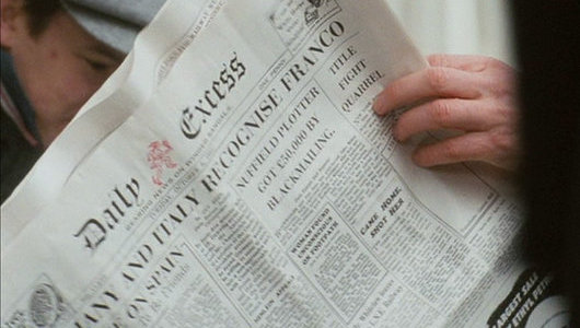 Sometimes the filmmakers disposed with the Excess altogether and just had characters, such as Lady Metroland above, peruse up contemporary copies of the Daily Express.