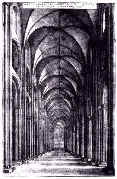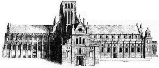 The cloister was particularly unusual in English architecture. The destruction was a great loss, although after all the mutilations and additions, such as by Indigo Jones, it was a strange beast.