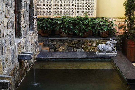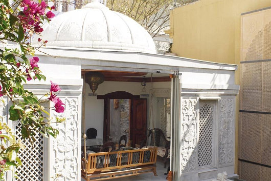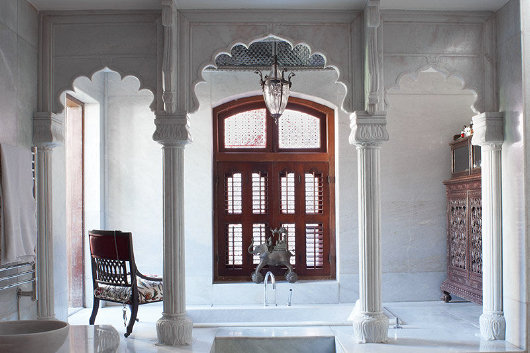 Twee versamelaars van suid-Asiatiese kuns het ’n subkontinentale woning in ’n Kaapstadse meenthuis geskep. Die huis was die onderwerp van ’n artikel deur Johan van Zyl in ’n onlangse uitgawe van Visi-tydskrif met hierdie foto’s van Mark Williams. Die algehele effek is ’n bietjie “over the top” vir my, maar die verleiding van die Oriënt sal nooit ophou. (Bo: ’n Paar van marmer-olifante uit Udaipur wagte by die hoofingang).