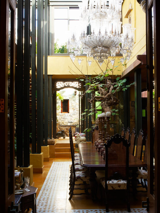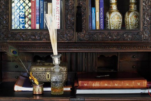 “’n Dekade of twee gelede het die reeds luisterryke geskiedenis van die huis ’n eksotiese dimensie bygekry toe twee toegewyde versamelaars — selferkende stadsjapies wat destyds in die modebedryf werksaam was — hier kom nesskop met hulle groeiende versameling Indiese oudhede.”