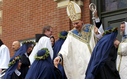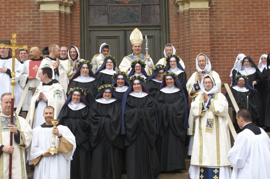 The author of Kansas Catholic was gracious enough to provide his readers with numerous photos of the recent profession of vows of the Benedictines of Mary, Queen of the Apostles that took place recently at Old St. Patrick’s in Kansas City, Mo. The Benedictines of Mary, Queen of the Apostles are a “traditional monastic community of women who desire to imitate the Blessed Virgin Mary in the giving of herself to God to fulfill His Will, especially in her role of assistance by prayer and work to the Apostles, first priests of the Catholic Church”.
