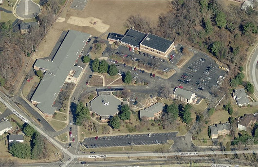 The current set-up includes a modern church-in-the-round, a rectory, an older chapel, a gymnasium, and a parish school taking a larger amount of land but only a single storey tall. Parking lots take up a significant proportion of the property.