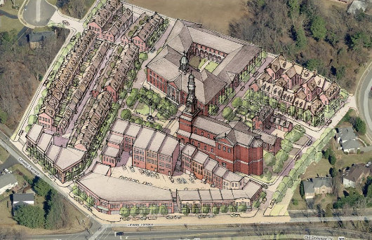 All remarks were much appreciated. I could pen a small book in response to each of them, but alas, time does not allow. But just a few points of clarification. First, the idea was indeed influenced by Phillip Bess. Second, the proposed village would be tied into the neighborhood as seamlessly as the adjacent neighbors will allow. The perimeter woods are adjacent residential private yards.The open field behind the village is the athletic field for the parochial school built around its internal courtyard. This would now doubt be used by the neighborhood as well, one of the many positive synergies that will accrue to the surrounding neighborhood – currently a single family residential monoculture. As for the reality of it, a young man recently prepared a pro forma for it as part of his university thesis on a degree in real estate development. The numbers work.