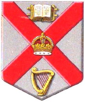 The Queen’s University arms employed a number of emblems. A crown superimposed on the St. Patrick’s Cross emphasised the royal patronage; the open book symbolised learning, while the harp below again represented Ireland.