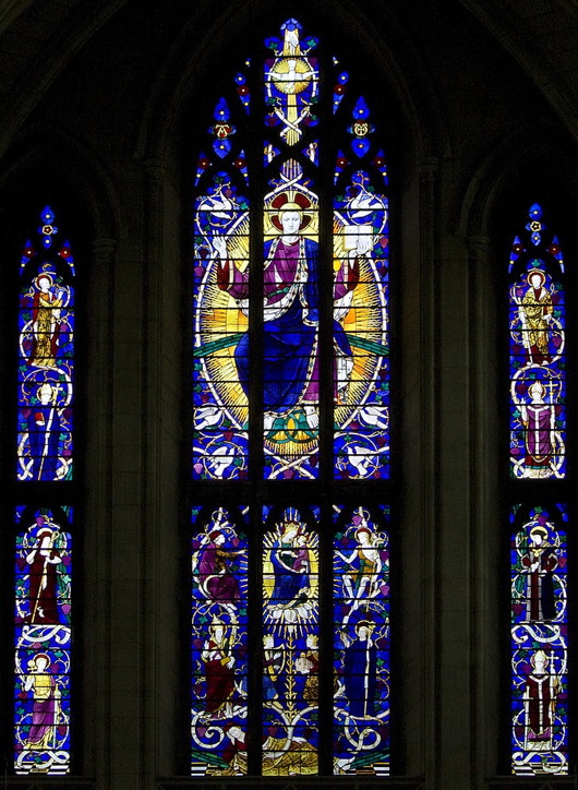 Sitting there waiting for midnight mass to begin, the Great East Window was shrouded in darkness, its colourful scheme hidden by the night. But I remembered that the blogger at Inscrutable Being, an art historian, devoted an entire blog post to the window, ‘Some Thoughts on Ninian Comper and the East Window of Downside Abbey’. According to the author, the window demonstrates Ninian Comper’s “concern for expressing good truth beautifully with careful unoriginality”. I’ve not yet seen a copy, but I will have to purchase Downside: An Architectural History. (I’ve added it to my Amazon wishlist at least). If the artist/architect is your area of interest, rather than the place, then Symondson & Bucknall’s Sir Ninian Comper is the place to start.
