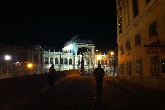 Walking the dog at night by the University.