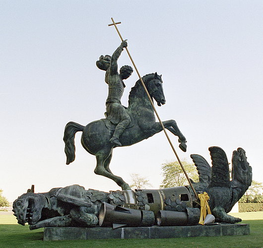 Which brings us to the most important work of art — for what it signifies — donated as a gift to the United Nations by the Soviet Union in its final days. Created from disused American and Soviet missiles, Zurab Tsereteli’s sculpture ‘Good Defeats Evil’ depicts Saint George slaying the dragon. That the crumbling atheistic state finally identified ‘good’ with the cross of Christ gives the donation an almost Milvian Bridge significance.