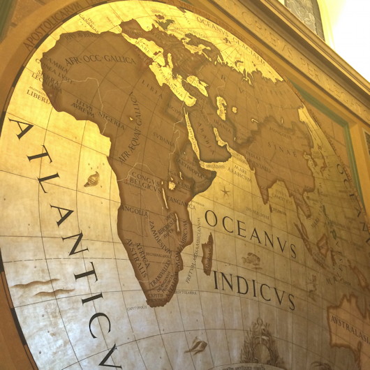 It’s no great secret I’m a lover of maps. When calling in to the Secretariat of State on the terza loggia of the Apostolic Palace in the Vatican the other day, I was very pleased to see the cartographic murals there, including the two hemispheres done by Ignazio Danti in the 1580s. Moving to the next interior offices, however, the visitor is greeted by a much more recent mappa mundi, dating from the 1930s, replete with the glamour of empire’s heydey.