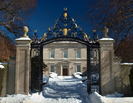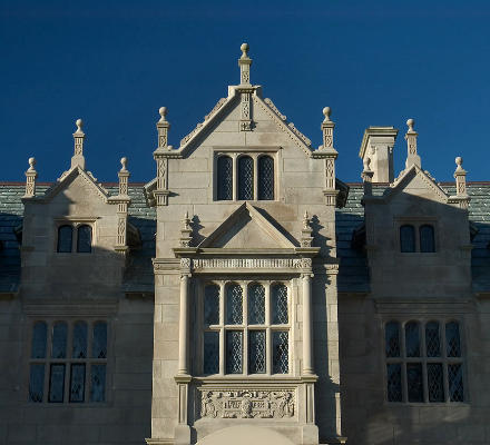 CLARENDON COURT IS one of the more comely of the Newport “cottages”. Built a little later than most, it avoids the Mediterranean gallimaufry of the Breakers and the French frilliness of many of the other Newport mansions (The Elms, Marble House, etc.). Its chief fame, however, comes not from its architectural excellence but rather as the family home where Sunny von Bülow fell into a permanent vegetative state, leading to the arrest and conviction for attempted murder of her husband Claus von Bülow. Von Bülow’s conviction was overturned on appeal, when he was represented by the famous Alan Dershowitz.