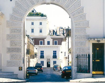 Typical London, and yet the gable on Lion Lodge (the building which terminates the view), together with the general white-wash of the façades, gives it a hint of Cape Town. Lion Lodge is a recent structure by Liam O’Connor Architects and Planning Consultants.