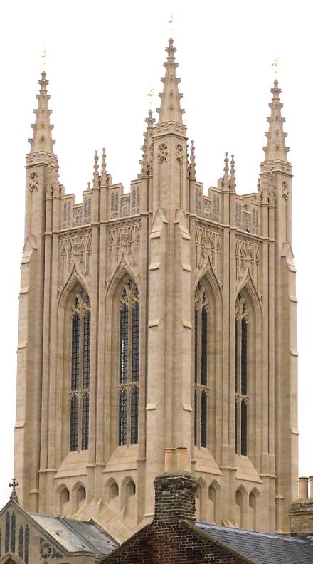 THE LAST UNFINISHED cathedral in the Church of England was finally finished this year with the completion of the crossing tower of St. Edmundsbury Cathedral. The tower was not only designed in the Suffolk perpindicular style but also constructed using traditional techniques. The brick and masonry spire is held together by lime mortar, without an inch of steel or concrete.