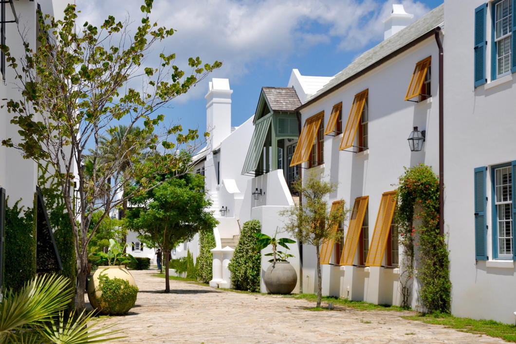 Rosemary Beach, their second development, was a vast improvement and based its architecture on the actual Spanish colonial styles used when the Cross of Burgundy flew over Florida rather than the more Mediterranean-influenced Spanish Colonial Revival of the late nineteenth and early twentieth centuries.