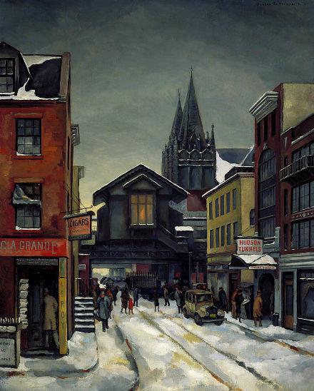 An Aside: I was taught Latin beside the beautiful carved marble fireplace in the artist’s dining room. Winter lived next door to the school, which purchased the house after his death and used it for class rooms. In our more neglectful hours which investigated the basement, in which were still secreted some of the artist’s sketches for larger murals and models for a bas-relief.