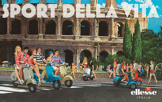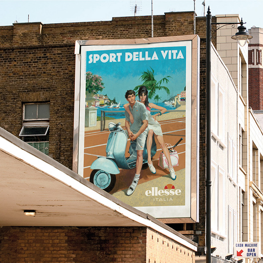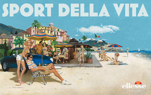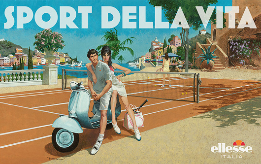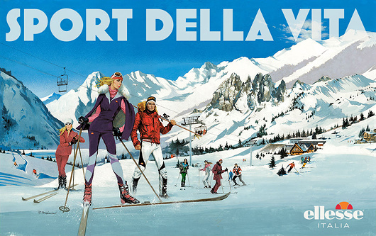 Ellesse was founded in 1959 by Leonardo Servadio — L.S. — and became known for combining functional sportswear with a sense of fashion. The firm was purchased by Britain’s Pentland Group in 1994, and it’s Pentland’s ad team that commissioned McGinnis to come up with these retro ad designs.