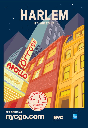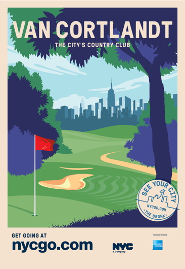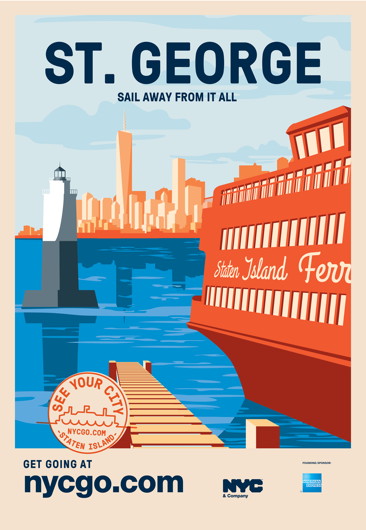 The style evokes old-school travel posters of the 1920s & 30s, and NYC&Co commissioned one for each of the five boroughs.