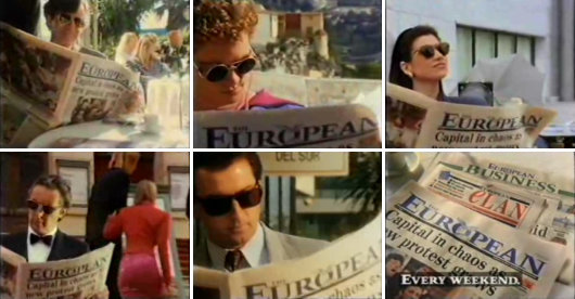 Watch this splendidly dated television advertisement for The European from 1991. In that year, the Soviet Union still existed, Eastern Airlines closed after sixty-two years in aviation, the IRA was still bombing London, Archbishop Lefebvre went on to his eternal reward, Édith Cresson became premier of France, and the Dow Jones closed above 3,000 for the first time — today it closed at 11,532.88.