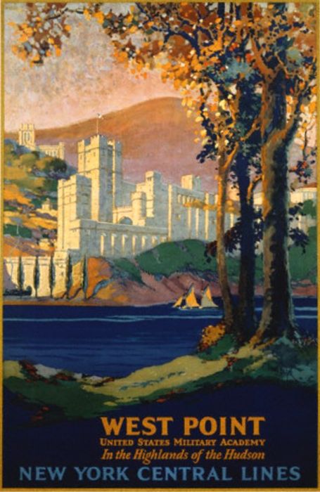 Having been duly capped on the head by the Rt. Hon. Menzies Campbell QC MP with John Knox’s breeks last Thursday I have returned to the land of my birth a Master of the Arts. Details of the various rites and festivities are forthcoming, but in the mean time I share with you these three travel posters from back in the day when they made proper travel posters. All three advertise our blessed Empire State, two of them West Point, the glorious gothic crown of the Hudson. Excelsior!