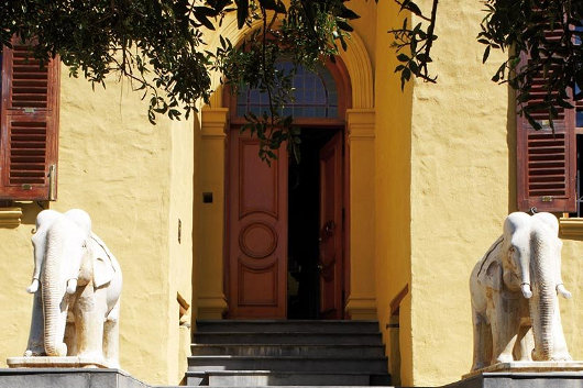 Twee versamelaars van suid-Asiatiese kuns het ’n subkontinentale woning in ’n Kaapstadse meenthuis geskep. Die huis was die onderwerp van ’n artikel deur Johan van Zyl in ’n onlangse uitgawe van Visi-tydskrif met hierdie foto’s van Mark Williams. Die algehele effek is ’n bietjie “over the top” vir my, maar die verleiding van die Oriënt sal nooit ophou. (Bo: ’n Paar van marmer-olifante uit Udaipur wagte by die hoofingang).