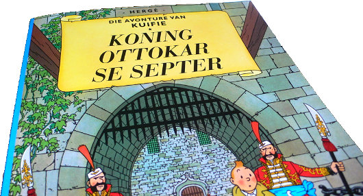 SYLDAVIA IS MY favourite country in the world. The buildings are old, the peasants are happy, and the king is ruling from his throne. Adding to my collection of Tintin books, the preponderance of which remain in New York, I know have three Afrikaans editions of Hergé’s works: Die Blou Lotus, Die Geheim van ‘De Eenhoorn’, and — my preferred among all the Tintin books — Koning Ottokar se Septer. Aside from Afrikaans, the rest of my copies are all either in French or English. I have a copy of the reprinted Tintin au Pays des Soviets and I just recently bought a copy of Tintin in the Congo, as I figured the European Union’s attempt to ban the book might make it harder to come by in years to come. I bought a copy of Le Sceptre d’Ottokar in a gas station in Brittany, one of the six special editions with a preface by Bernard Tordeur of the Hergé Foundation released in 1999/2000. Aside from Au Pays des Soviets & Le Sceptre, the only other French editions I have are L’Île Noire and Le Lotus bleu. (more…)