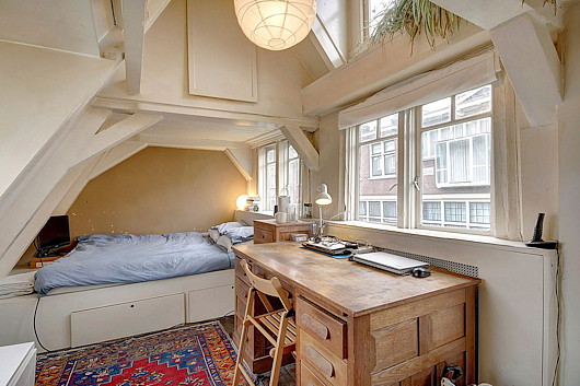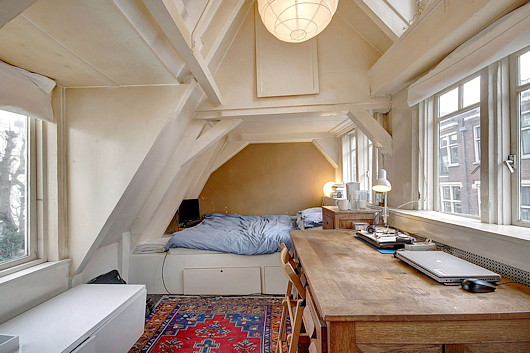 A friend sent this link to a property for sale in Amsterdam. I can easily imagine getting a lot of writing done while listening to LPs of baroque music (my latest craze) through a haze of cigarette smoke in a garret like this.
