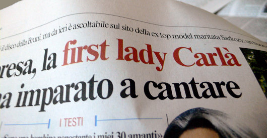 The French are always the one’s worrying about the revolting infiltration of English upon their beautiful and august language — and rightly so — but in my experience it is the Italians who should be worrying. One need only look at their newspapers to see the wretched expansion of English into one of the most beautiful languages of Europe, and indeed the world. Carla Bruni is “la first lady”? What’s wrong with “prima signora” or some other such equivalent. (more…)