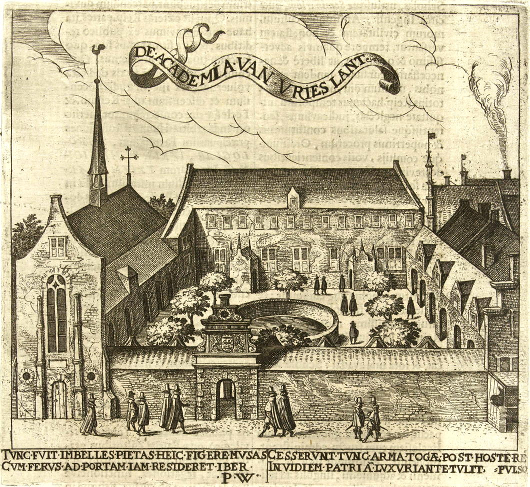 The University of Franeker (or Academy of Friesland) was established in 1585 by Willem Lodewijk of Nassau-Dillenburg, stadthouder of Friesland, as a Protestant foundation in the former cloister of the Canons Regular of the Order of the Holy Cross (sometimes called the Crosiers) whose confiscated property helped fund the new university.
