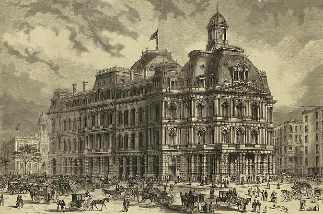 The original design (above) called for only four storeys but during the design process the need for more space to serve the growing city moved Mullett to slip another floor in beneath the mansard roof. (more…)