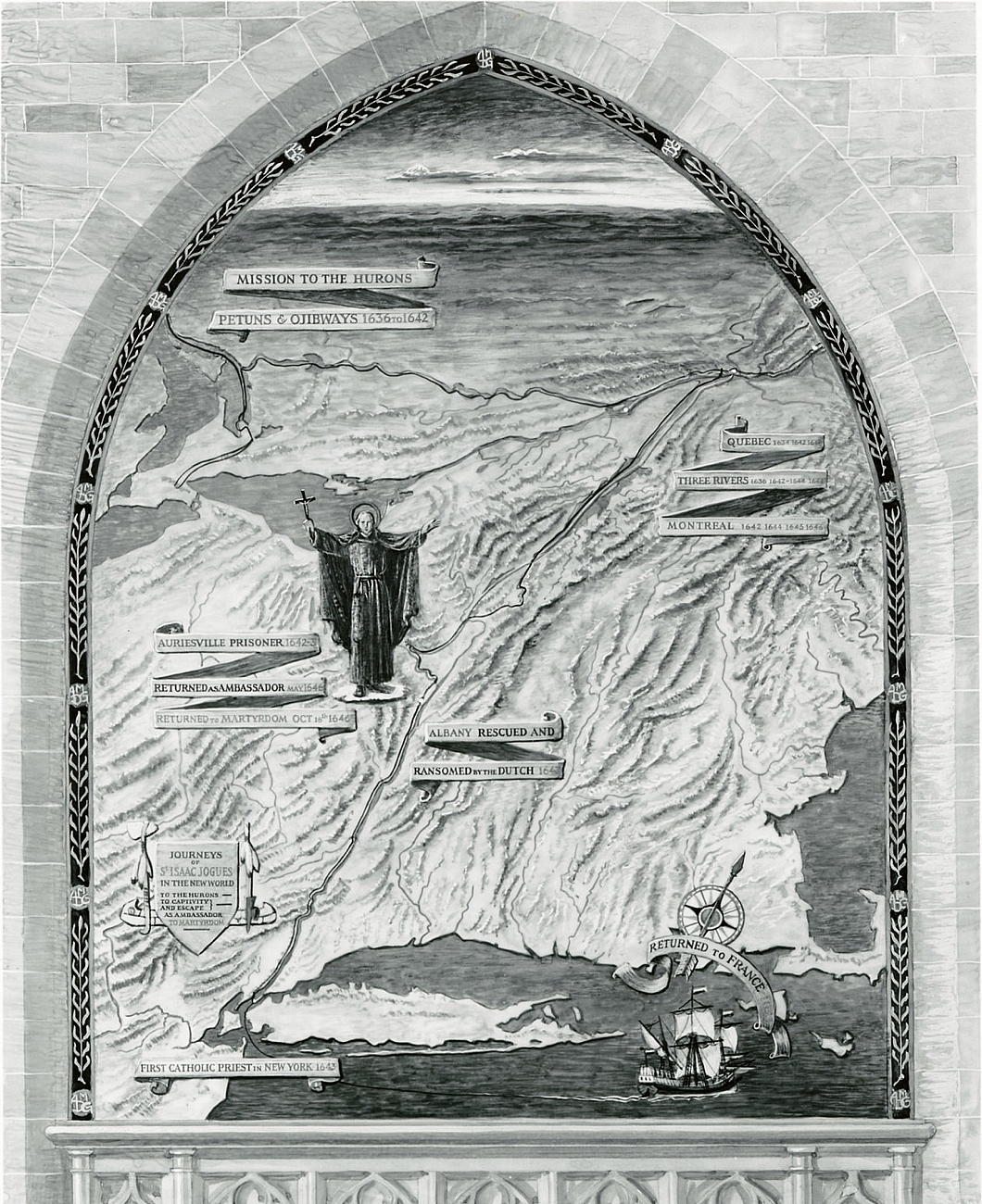 Jogues was the first Catholic priest to have visited the city of New York and did missionary work amongst many of the native tribes up the Hudson and beyond in New France before his martyrdom in 1646.