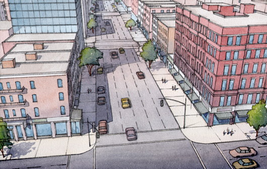 One of the thorough-going irritations of New York is that, for all its glories, one can’t help but feel that the individual, the human being, is simply not the priority there. This intriguing and worthwhile proposal from Massengale & Co, Dover Kohl & Partners, and H. Zeke Mermell, if executed, would go a long way to making the Upper East Side of Manhattan a much more people-friendly place.