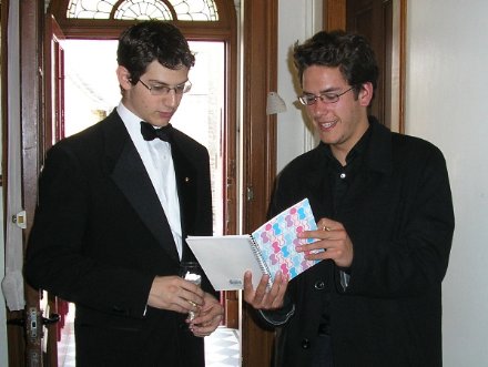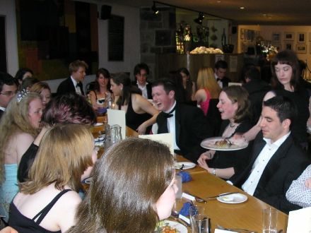 The evening was supposed to start with a champagne reception on Castle Sands but early in the day Mother Nature had seen fit to show us naught but her inclement side, and thus the reception was moved to the Common Room of Canmore, the Catholic Chaplaincy on the Scores. True to form, the skies cleared perfectly just before the start of the reception. Shame, would’ve been brilliant on the beach, but Canmore was cracking anyhow.