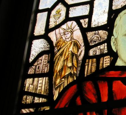 One of the interesting things about living in St. Salvator’s Hall is that one of the beautiful stained-glass windows in our wood-panelled dining hall is dedicated to Edward Harkness, and contains depictions of both the Big Apple and the Auld Gray Toon. Harkness was a benefactor of the University of St Andrews; in fact, he built St. Salvator’s Hall, as well as funding the renovation of the University Chapel (St. Salvator’s) and the restoration of the ruined St. Leonard’s Chapel.