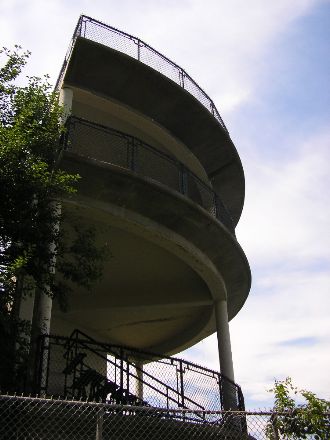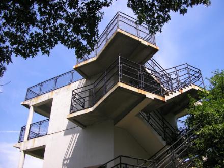 White with black railings, it has the air of the Russian constructivists about it, a style of architecture I’ve never been particularly keen on but this small-scale execution seems to have worked. It is both functional and attractive. The tower was fenced off but, lacking any direct prohibition, I took advantage of a gap in the fence to enter and climb the tower.