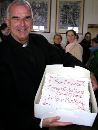 His Eminence celebrated forty years as a priest and twenty as a bishop yesterday, and shared with us a cake given to him by the people of Galashiels.