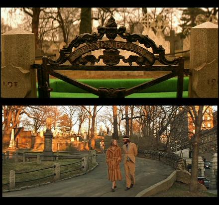 The neighbouring cemetery is also the one in which the churchyard scenes from Wes Anderson’s The Royal Tenenbaums (one of our favorite films) were filmed. The Royal Tenenbaums is set in an anonymous city but many a New Yorker will instantly recognise many of the buildings used in the film. Royal, who died of a heart attack, had his tombstone inscribed “died while rescuing his family from a sinking battleship”.