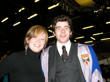 Parliamentary aide and sometime-St-Andrean Peter Murray once drunkenly bet me £50 in the Cellar Bar that I would one day be Convenor of the Debating Society. A foolish move on his part, as it was a bet it was more than easy for me to win; still awaiting payment. Nonetheless, I dropped in on the current Convenor Miss Laura Wilson who let me give her gown of office a try-on. Fit rather well actually (though I look a bit tipsy in the photo, taken by Miss Jennings).