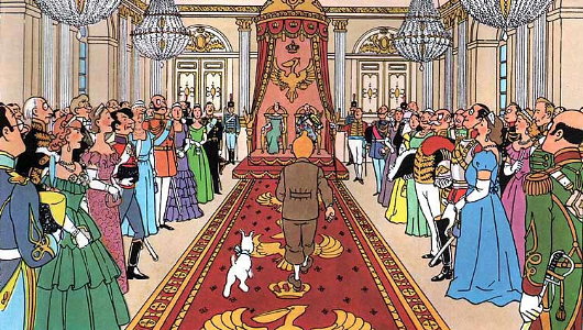 The fine day wrapped up with a showing of an episode of the animated Adventures of Tintin in the wardenial apartment of Canmore, followed by an Inspector Morse. The Tintin was ‘King Ottokar’s Sceptre’, in which the intrepid reporter saves the ritualistic traditional monarchy of Syldavia from being overthrown by evil totalitarian modernists. The best scene in the printed version (seen below), and likewise the animation, is when the King rewards Tintin’s bravery by awarding him Syldavia’s highest honour, the Order of the Gold Pelican. When I was younger, these scenes always made me want to visit the Kingdom of Syldavia, but alas it exists only in the mind of Hergé, its creator.