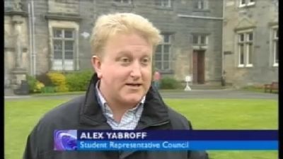 Some screen captures: Tom d’Ardenne, incoming President of the Students Association, with Alex Yabroff, the Californian incumbent, followed Dr. Brian Lang, our Principal and Vice-Chancellor (ie: the guy who actually runs the University), and a little context shot of St. Salvator’s Quad to round it up.